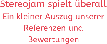 Folgende Locations und Liveveranstaltungen haben Stereojam bereits erfolgreich gestaltet.